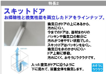「ドアもカビが生えやすいところなんだけど、換気口が水のかかりにくい上にあるから、汚れにくくてお掃除がらくちんなんだよね?」