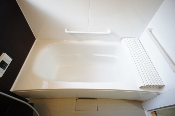「浴室の端ってカビが生えやすくてお掃除大変なのが、このパナソニックバスルームFZシリーズはスミピカフロアっていって床の端が立ち上がった構造で、防水性に優れているから汚れにくいんだよね。あと床も乾きやすくて滑りにくいんだよね」