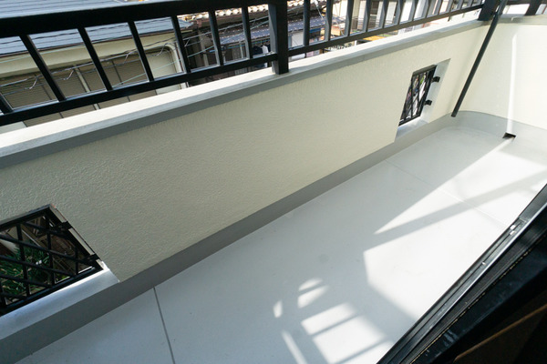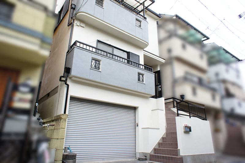 外壁・屋根を塗装し、ベランダ部分がアクセントカラーに。
