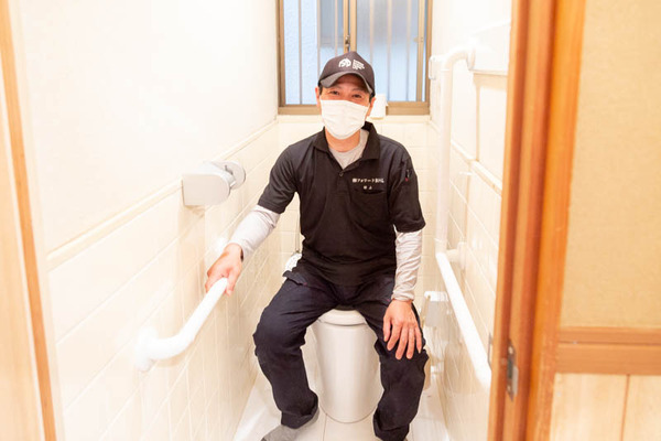「トイレの中には、内開きのドアで設置できなかった手すりも新しく設置したんだ。