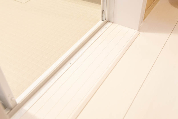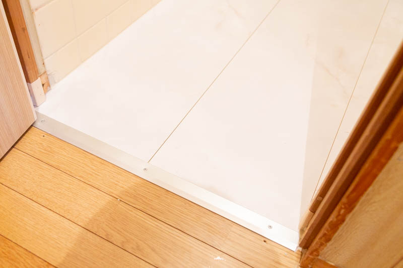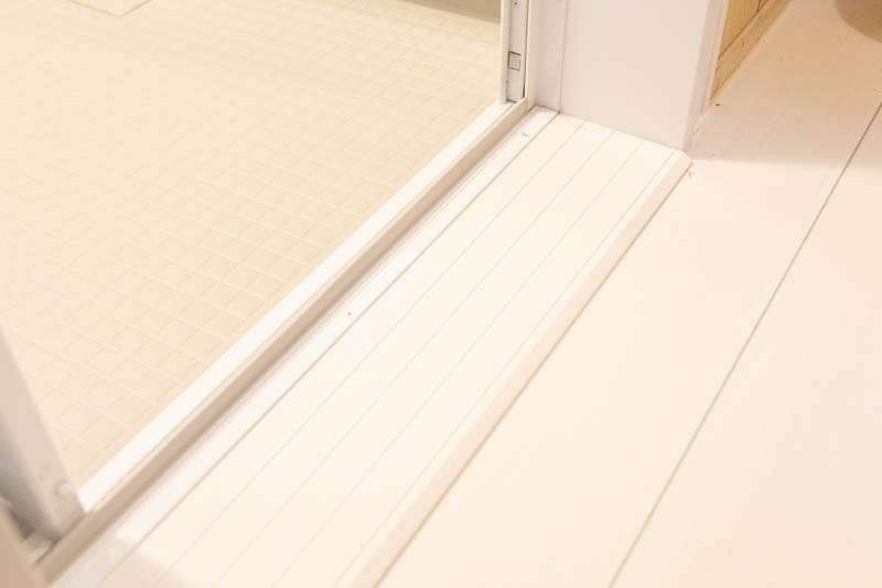 手前にも斜めの板を置いてできるだけ段差を無くそうとはしてるけど、やっぱり躓きそう」