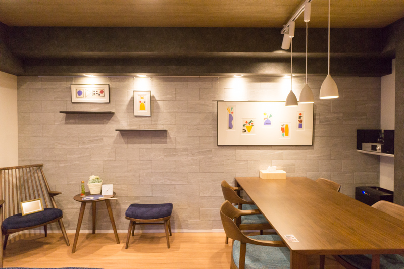 ほんと照明が難しかったんですよ。こうやって絵を飾りたかったんで、照明の角度と配置でいかに壁に映えるか、それが一番苦労しましたね。武田さんにもあーだこーだ言ったんで、絶対めんどくさいなって思ってたと思います(笑)
