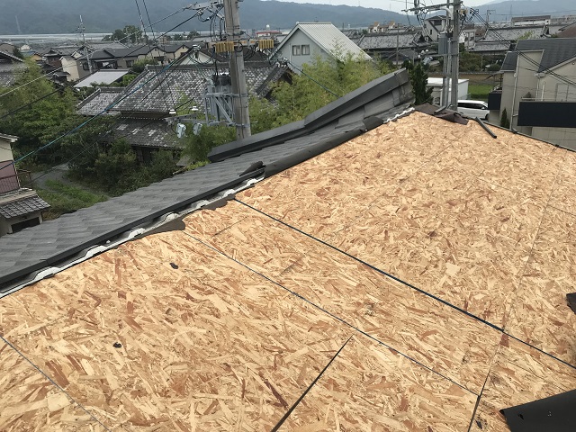 (ダイケンリフォームサービスが実際に対応した工事中の屋根)
