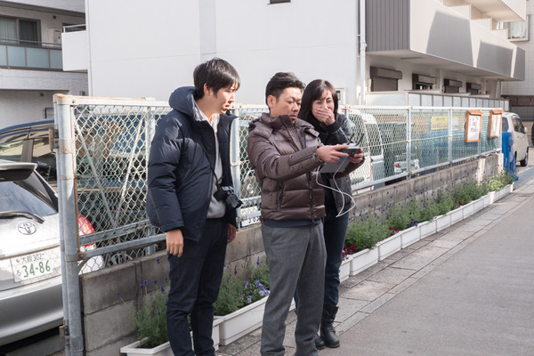 でもドローンやったら、誰も屋根に上がらんから故意に割ったり絶対できへんし、こんなふうに、クライアントと一緒に下で映像を確認できる。
