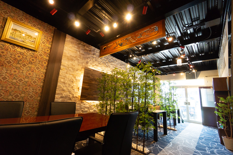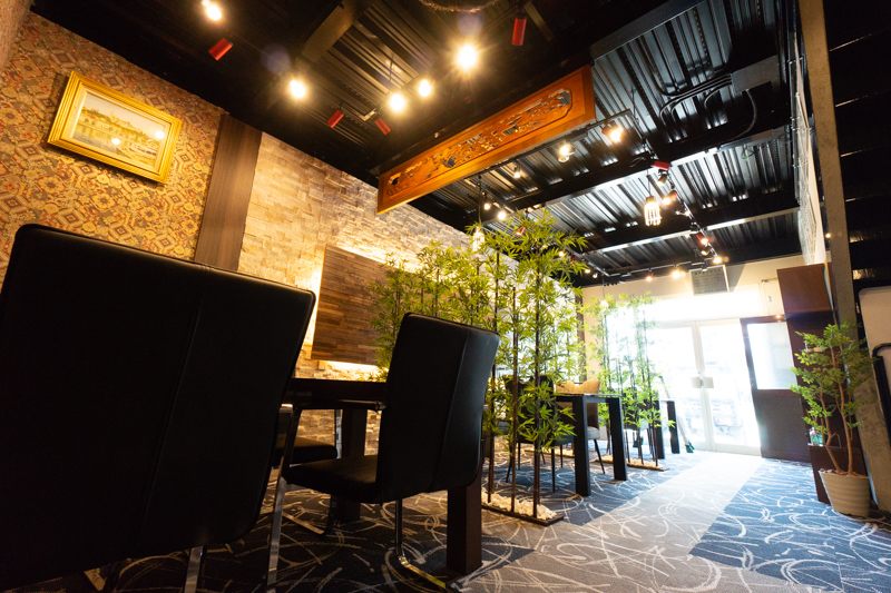 「和洋折衷・超モダン」がテーマだというこの空間はその名の通りシックなベースに入り乱れる「和」と「洋」。
