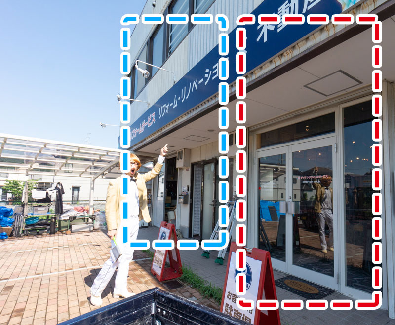 レセプションルームは既存のダイケンリフォームサービス(青枠)のお隣。