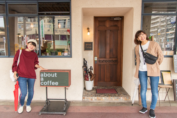 「about a coffee(略して、アバコー)はひらつーでも何回か取り上げてて、みんな大好きなお店やねん!」