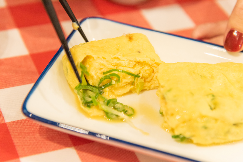 おすすめの玉子焼は具材の種類がいろいろ選べて、その場で作ってくれます。今回はネギをチョイス!