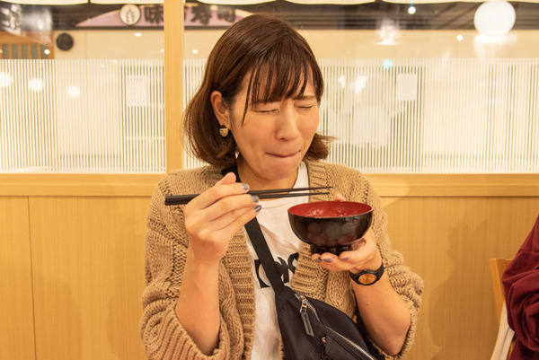 「ん〜お味噌汁も出汁が効いてて美味しいっ