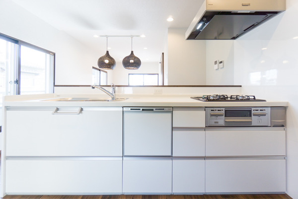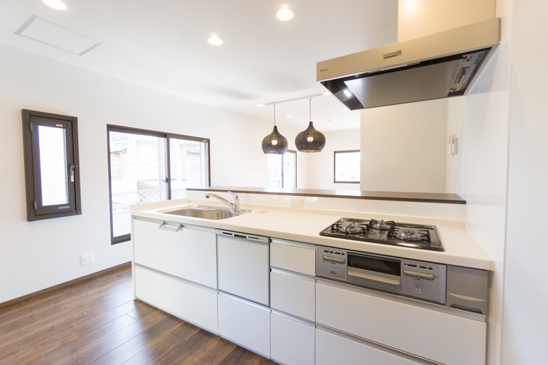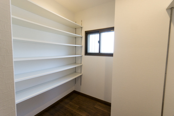 キッチンカウンターの下には収納力たっぷりの備え付け棚があります。