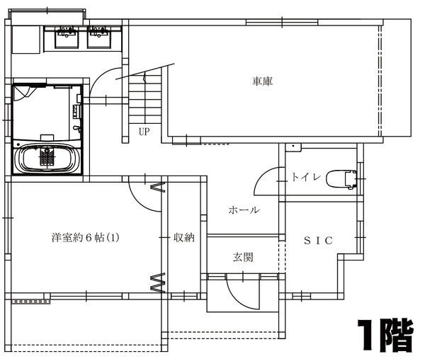 こちらが1階の間取図。では玄関から見ていくことにしましょう。