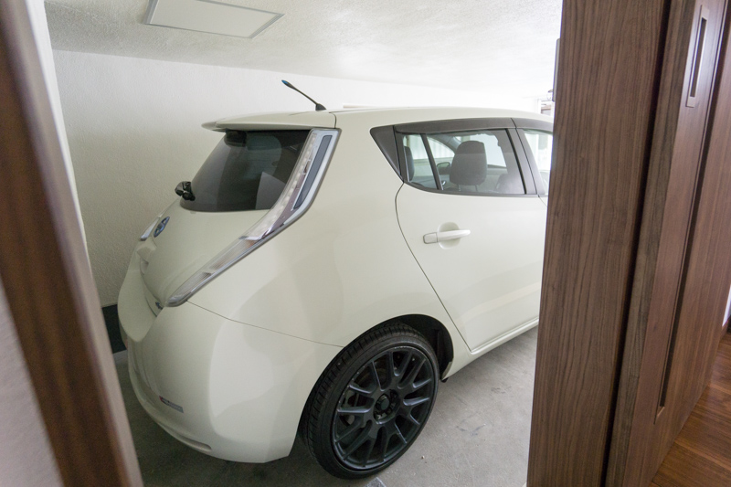 外から見たらこんな感じやね。電動シャッターやから開閉もラクラクやで。