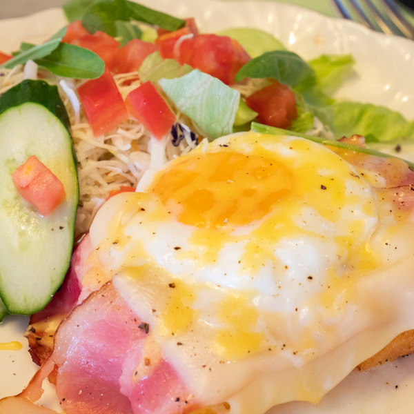 こだわりですか(笑)パンは自家製で、とろっとした卵と上のソースをかけてます。あとは…チーズとか?