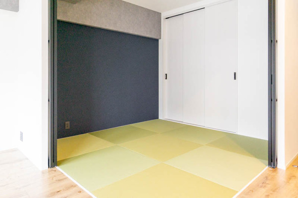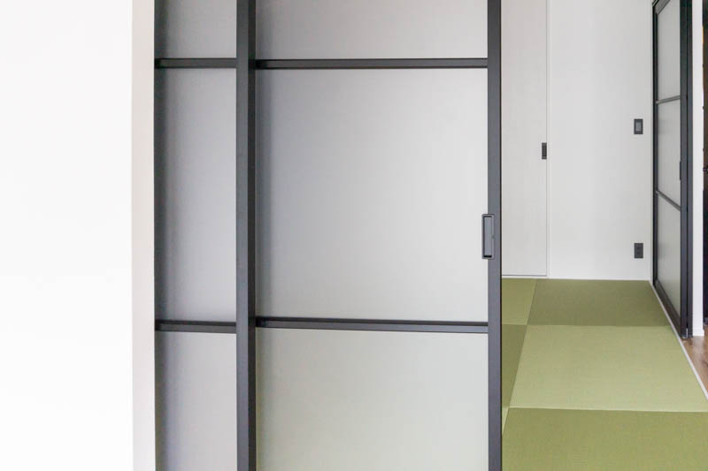 段差が無いのも安心で広々使えていいし、真四角のタタミが洋風な感じで建具とも合ってる