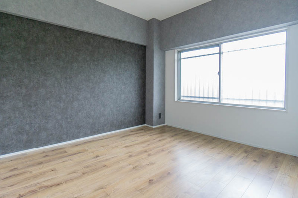 玄関のすぐ隣の洋室(5.5帖)も大きな窓からの光が明るくて、床材や壁紙の色合いがシックでかっこいい![]()