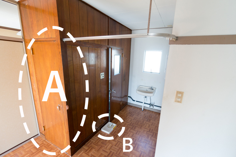 上記写真で白い点線で囲った『A』の部分は洗面手前の収納でした。