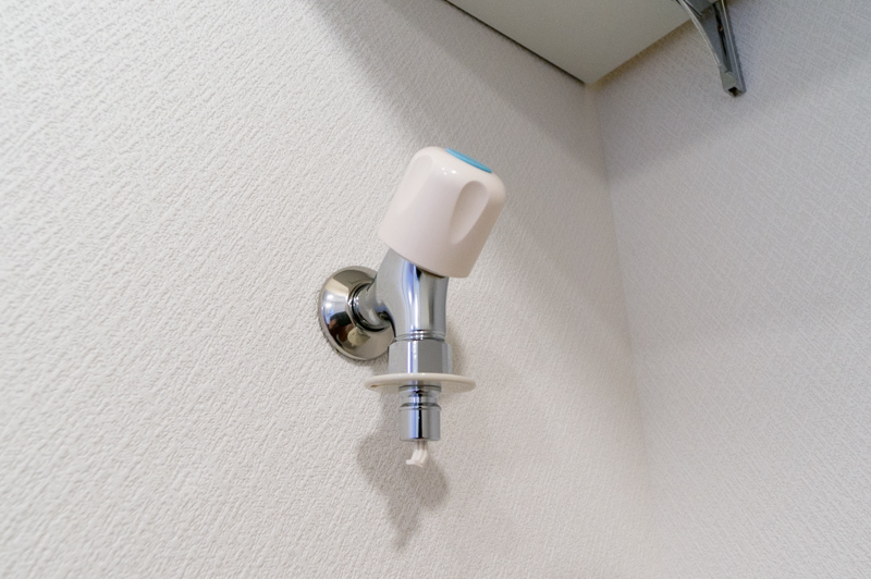 洗濯スペース内に水道を新たに引いたので、お風呂や洗面所からホースで水を引っ張ってくる必要もなくなりました。