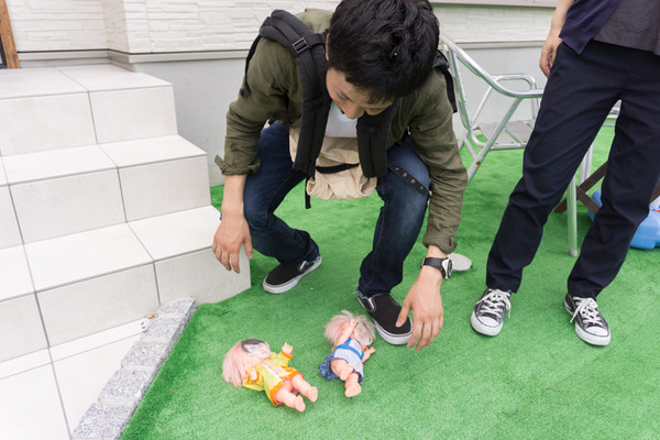 先輩(カトゥー・すどんに似た)赤ちゃん人形を落として焦っている様子(笑)