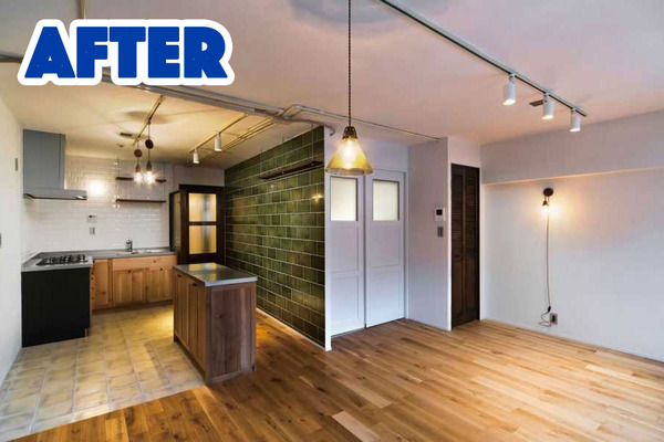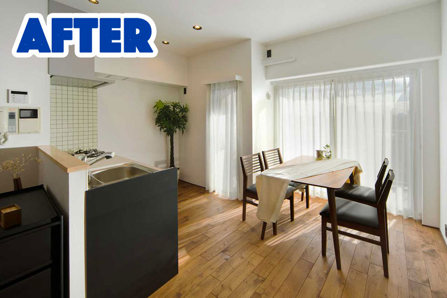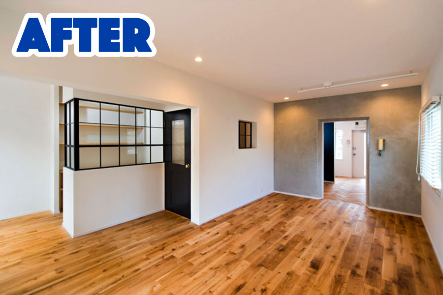 もともと壁付けだったキッチンをオープンキッチンにしたり、2部屋を1部屋にしたりと自由に間取りを変更出来るのがリノベーションの強み。