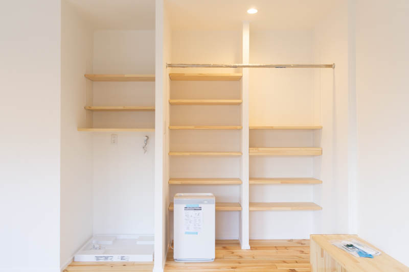 壁際には洗濯機を置くスペースも設置されています。