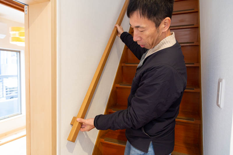 「ちなみに階段にもこんな感じで木の手すりが付く予定です。
