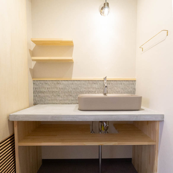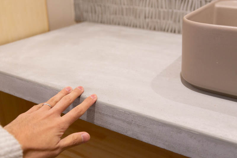 洗面のカウンターはモルタル製。