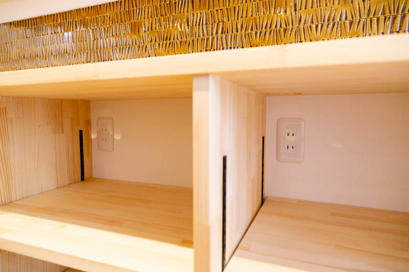見た目が繁雑にならないようにコンセントも棚の中に収められています。