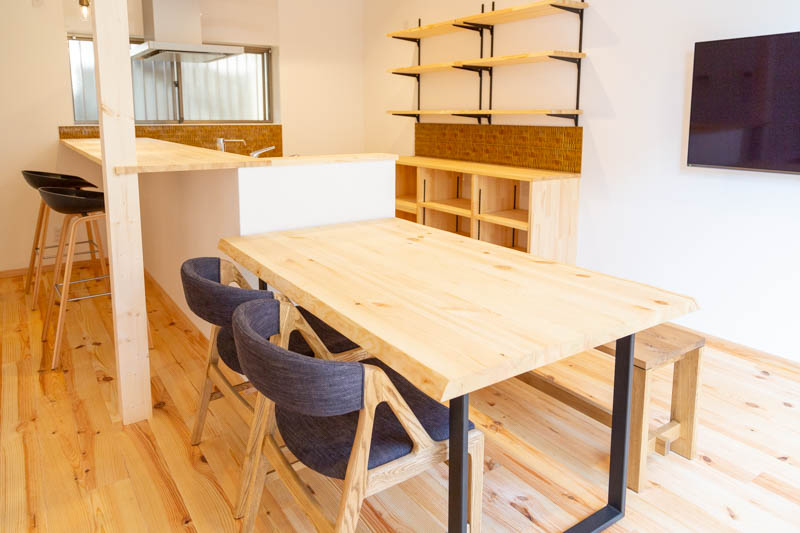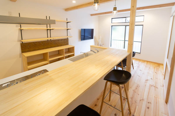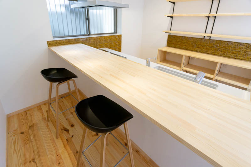 「キッチンの位置も変えて対面式でカウンター席も設置しました。