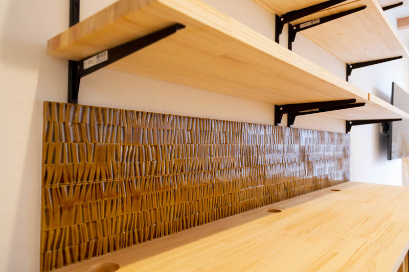 「後ろのキッチンボードもウチで作ったんです。」