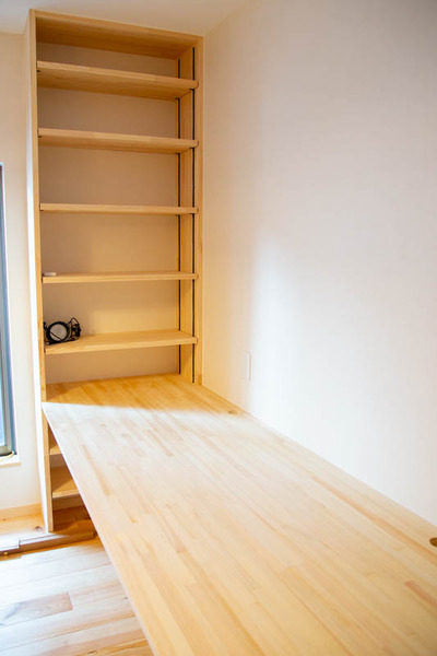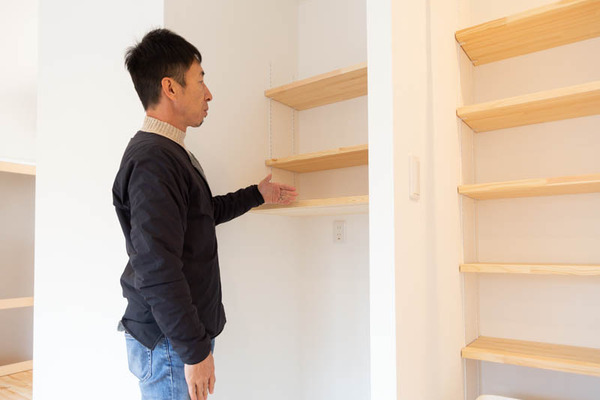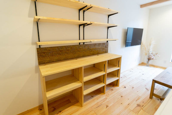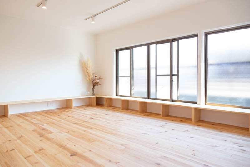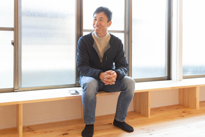 「家具をできるだけ置かないようにしたいとのことやったので、備え付けで棚兼ベンチにしたらどうですかって提案したんですよ。