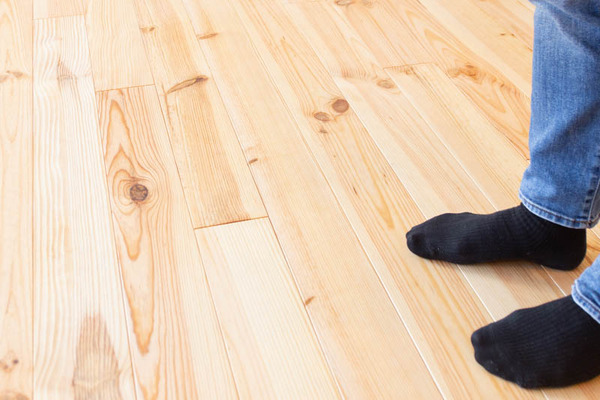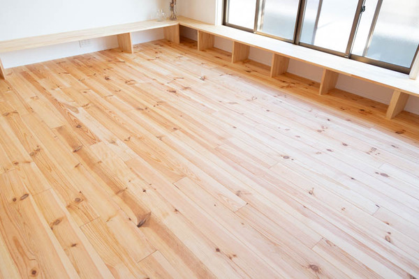 リビングは無垢板のフローリングで、
