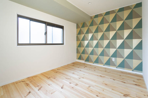 「ただ、ちょっとだけ壁紙が足りなくて端っこだけ壁が見えちゃってるんです。」