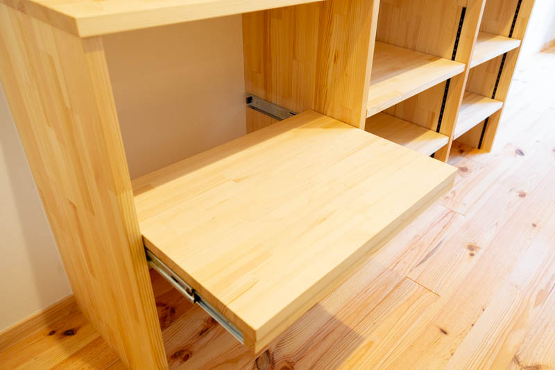 炊飯器などを置ける引き出しも備えられていて実用性もバッチリ。