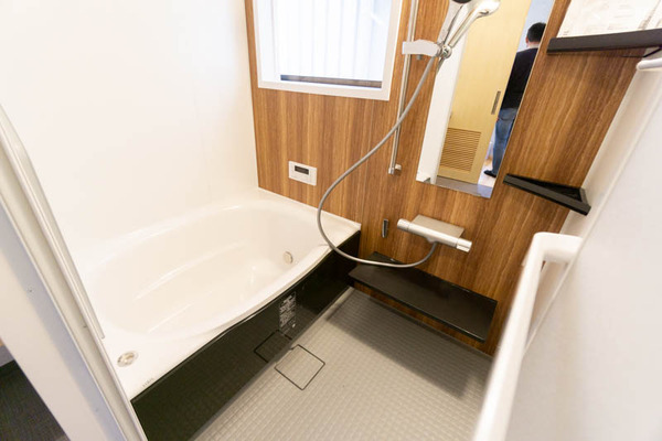 コチラはバスルーム。木目調の壁がお家の雰囲気にマッチしています。