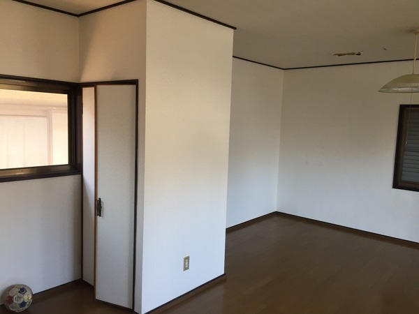 開放感があって、お部屋全体が明るいダイニングキッチンですけど、リノベーション前はこんな感じやったんですよ。」