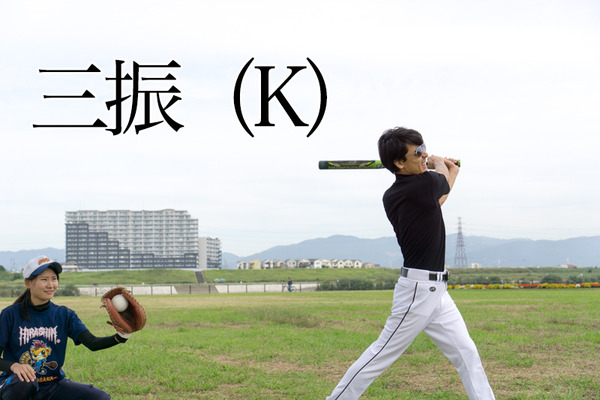「カトゥーさん仕事サボって抜け出したと思ったら、ソフトボールやってるやん。しかも全然当たらへんし三振(K)ばっかりやし…」