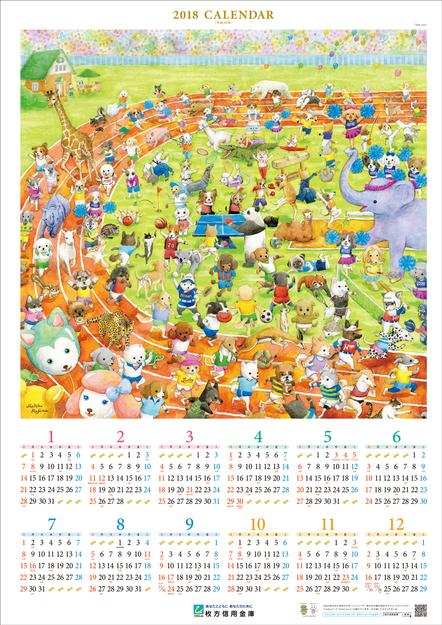 来年の干支は「戌(いぬ)」ということで、たくさんの犬のイラストのなかに、通帳でも大人気のくらわんこ、そしてお友達のひらにゃんこも隠れています。ぜひお近くの支店でお持ち帰りいただき、ご家族皆さんで探していただければ嬉しいです。
