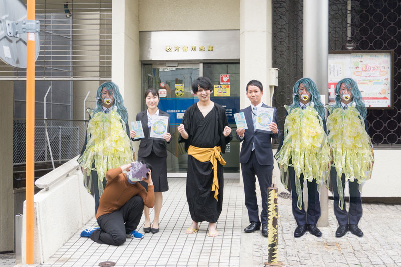 枚方信用金庫で配布されているマスクを収納できるマスクポケット!マスクポケットには可愛いアマビエのキャラクターがAR画像で見られるQRコードがついてます