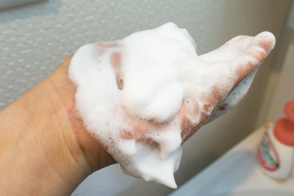 モコモコ泡立てていると手もついでに潤っている感じ。なめらかで、しっかり美容成分が入っているんだな〜とこの時点で実感しました。