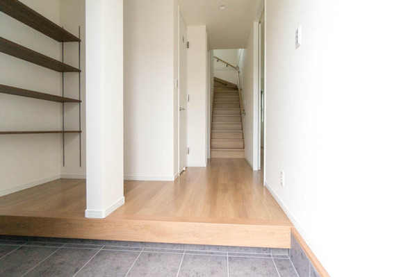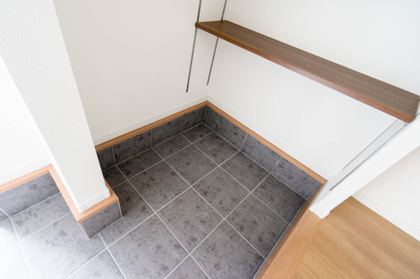 左側の棚は土間になってるから、買いだめしたミネラルウォーターとかベビーカーなんかもここにそのまま置いておけるで!