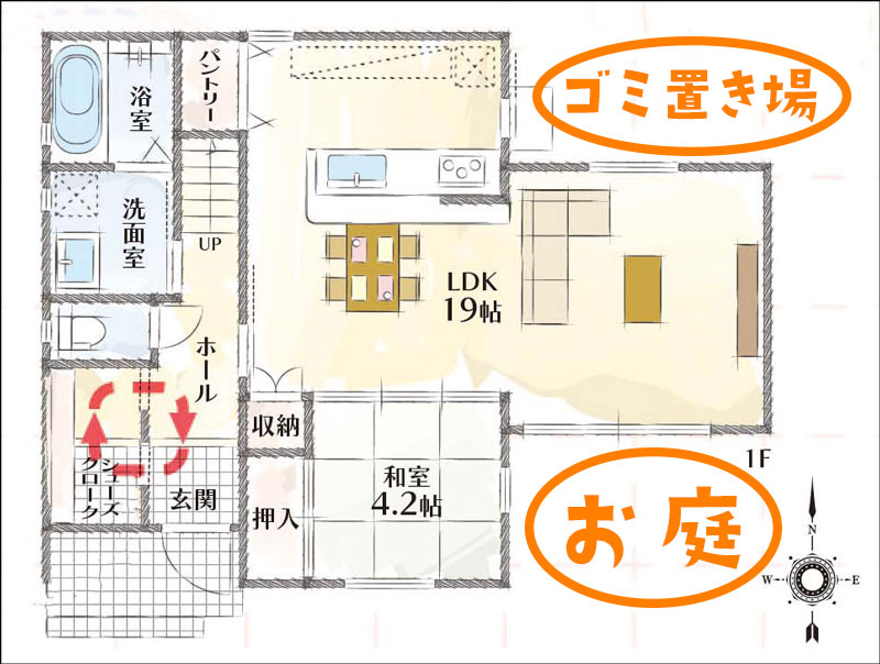 日々の生活で重要になってくる家事の動線はもちろん、タップリの収納高天井のリビングなど、生活を彩る設備が充実