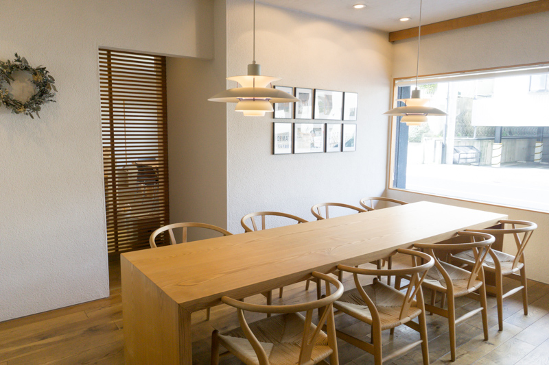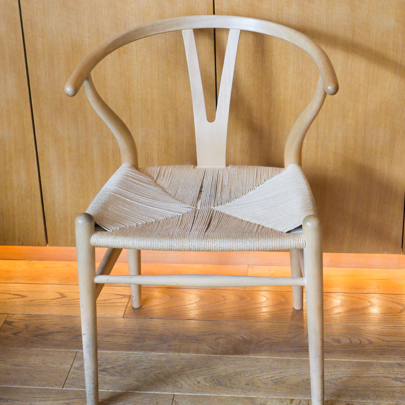 例えば、このテーブルはナラの木の無垢材で作られています。そして、お座りいただく椅子は世界的に有名な北欧デザインの名作、ハンス・J・ウェグナーが1950年にデザインした「Yチェア」です。