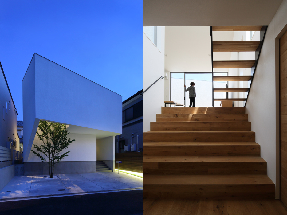 車好きのご主人のためにつくられた室内に直結する駐車場、家族みんなで囲めるキッチン、敷地奥の庭の中心にある和室、座って寛げる階段スペース、家事や学習スペースにもなるセカンドリビングなどなど。