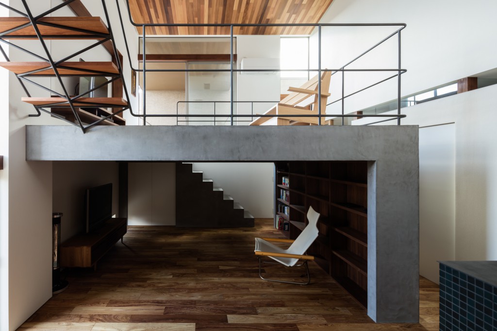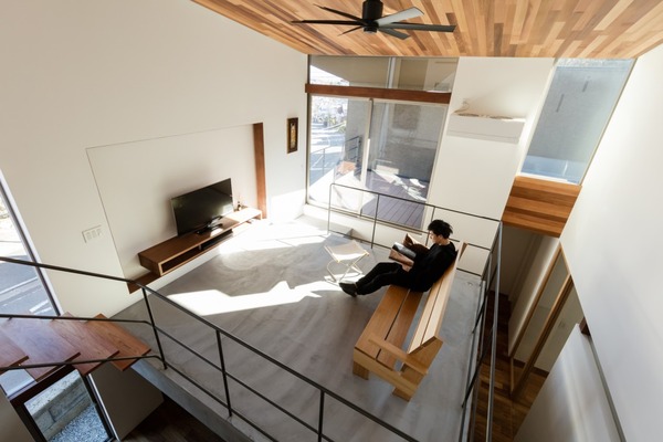 実際の面積よりも広く感じるだけでなく、ダイナミックな空間構成になるスキップフロア。
