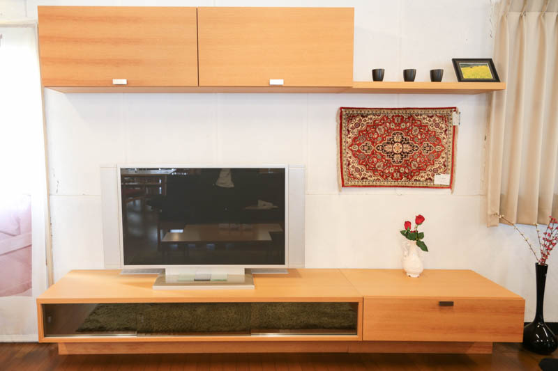上部ユニットと下部ユニットの間隔を自由に決めてセット出来るリビングボードは現品限りです!
