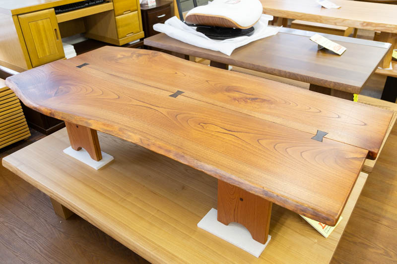 2枚の板をつなぎ合わせた2枚ハギになっているから為せる技です。