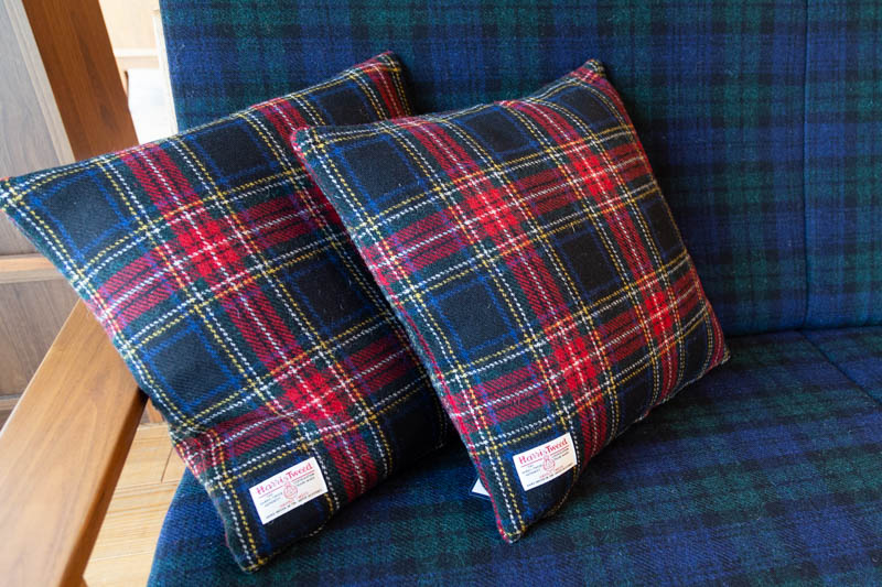 付属のクッションにもハリスツイードのタグがしっかりついています