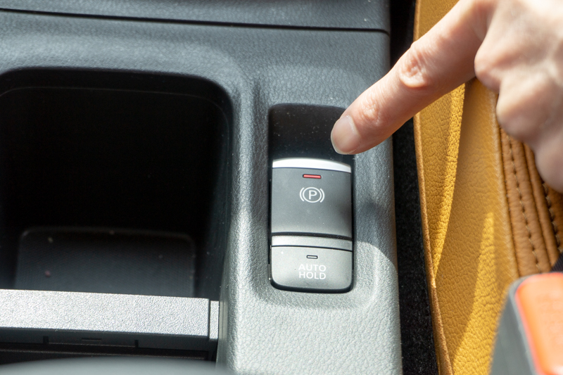 「で、この状態の時にアクセル踏んでもらったらそのまま進めます。信号待ちが長いときなんかに、ブレーキペダルを踏み続けるのって結構しんどくないですか?ブレーキホールドが有ると無いのでは疲労感が全然違ってきます」