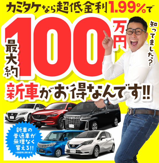 新車の普通車だと、低金利1.99%とお得に購入できちゃいます!