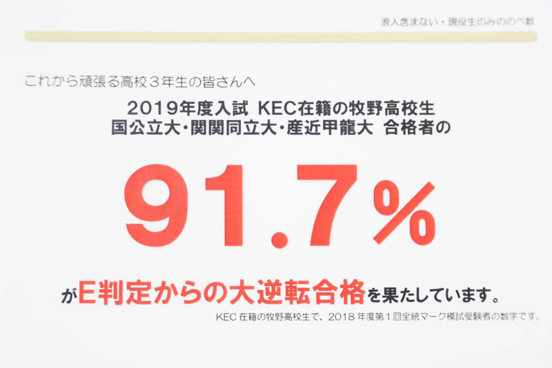 KEC在籍の牧野高校生で国公立、関関同立、産近甲龍の合格者の91.7%はE判定から合格したそうです!